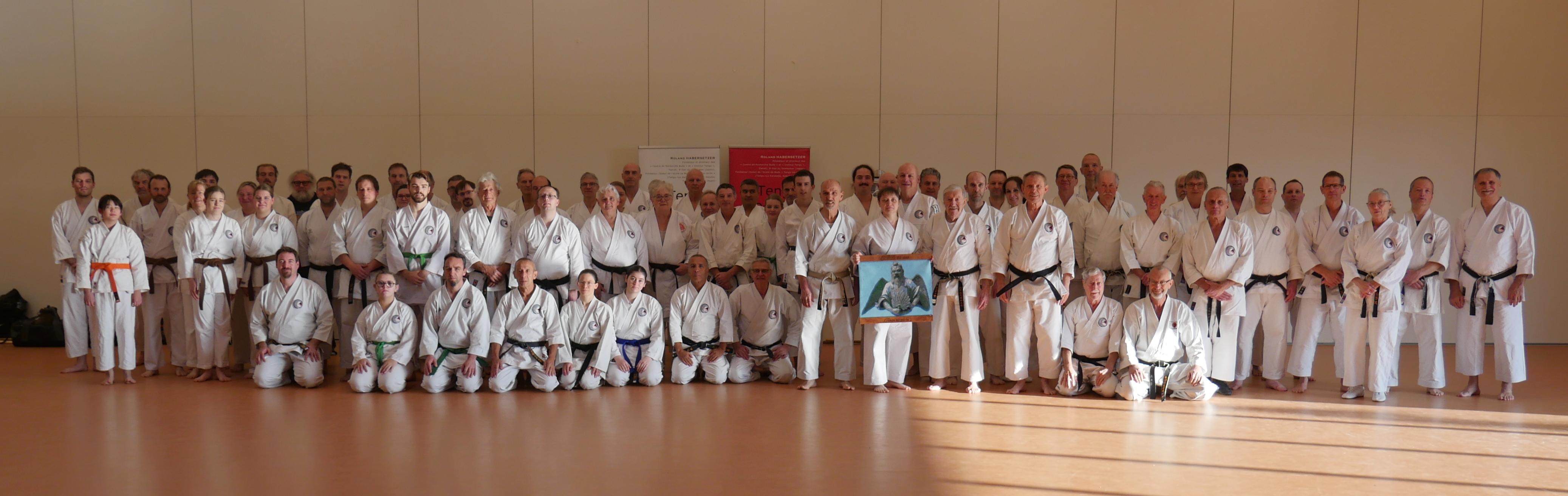 Deux jours, donc, de travail dans la concentration et la convivialité (Do-raku !). 80 Tengukas furent enore là ce week-end ! Malgré ce temps qui complique les choses et change les comportements. Un séminaire toutefois attristé par le départ de Nathalie (4ème Dan Tengu, dirigeant un Dojo en Russie, et en pilote deux autres) qui était déjà fidèle à ce rendez-vous pour la 20ème fois depuis 2009 (!), mais qui a vu refusée sa demande de nouveau visa. Juste pour dire... à ceux et celles qui trouvent le Dojo d'Eschau (Strasbourg) un peu trop loin pour nous rejoindre, que Nathalie avait encore fait cette fois pas moins de dix heures de vol, depuis Orenbourg (à 2000 km à l'Est de Moscou), en passant par le Kazakhstan, puis la Turquie pour pouvoir entrer dans l'espace Shengen. Histoire de problèmes d'aéroports oblige (les drones !). Deux nuits en escales sans dormir, pour être là, malgré un décalage horaires de 4 heures, et tous ces bruits de bottes auxquels des politiques irresponsables nous habituent tout doucement. Oui, ce fut un douloureux espoir d'au-revoir, auprès de tant d'amis qu'elle s'était faits en Alsace. On se battra pour qu'elle puisse revenir l'an prochain !