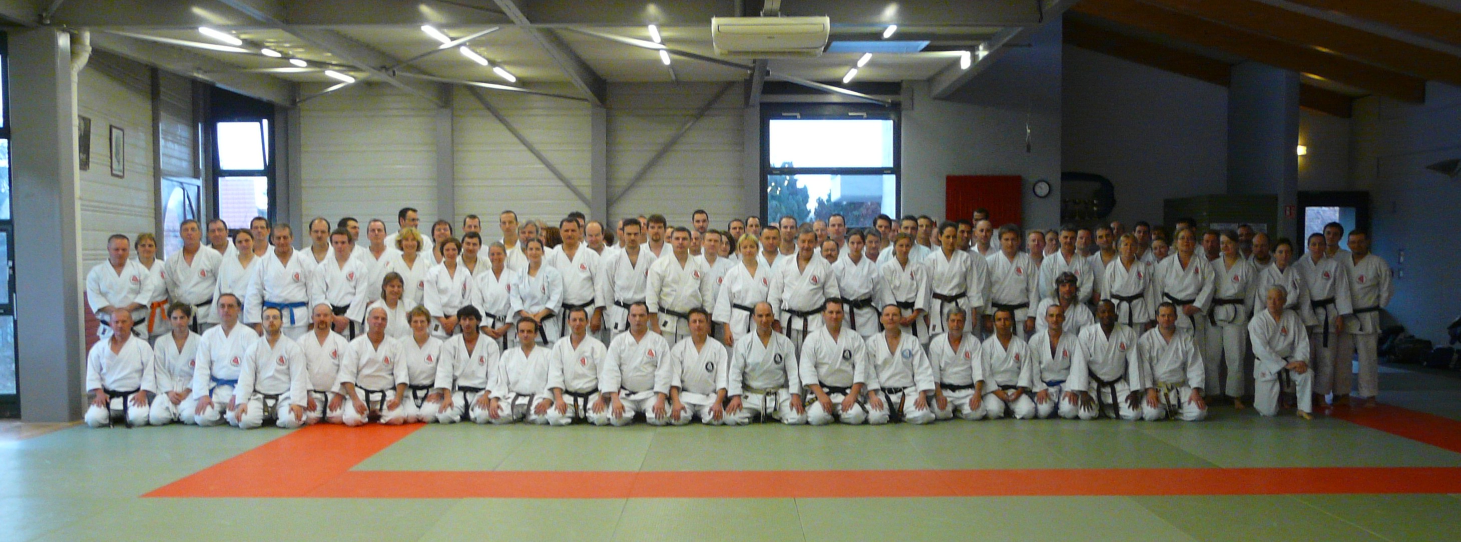 Le dernier Kan Geiko de Strasbourg, les 21 et 22 novembre 2009, eut en cette période difficile, l'ombre de la crise s'allongeant lentement et sûrement, une affluence tout à fait inattendue par ses organisateurs, exceptionnelle même ! Même le spectre de la pandémie grippale annoncée n'a fait reculer personne. Pourtant Strasbourg avait été placé au niveau 5 dans l'échelle d'alerte (sur 6)... On est "martial" au Centre de Recherche Budo - Institut Tengu... ! Ki contre virus... ?!?! Plus d'une centaine de participants (tous adultes), dont un nombre impressionnant de Yudanshas, se sont ainsi une nouvelle fois retrouvés dans la capitale alsacienne. Ce qui reste extraordinaire dans le cas des stages dirigés par Shihan Habersetzer (seulement deux stages par an, l'un en mai l'autre en novembre, sont encore ouverts aux non-membres de son association), c'est que 80 à 90% des stagaires sont ceux qui y reviennent régulièrement, constituant ainsi un " noyau dur " auquel rêvent tous les enseignants d'arts martiaux réellement préoccupés d'avancer dans ce qu'ils désirent enseigner et transmettre. Dans de telles conditions la progression est évidente, réelle, bien visible. Shihan Habersetzer débuta ce stage dans un Dojo d'Eschau absolument saturé, en présentant un diagramme, afin de bien faire comprendre son "concept Tengu", ou comment on passe de Tengu-ryu Karatedo, qu'il ne considère que comme un outil, à Tengu-no-michi, qui est l'objectif final dans la progression qu'il propose, et ce dans le cadre d'un "martial à vocation éducative" (Bu-iku). L'occasion de rappeler qu'il faut voir dans une pratique "martiale" un chemin sur toute une vie d'homme ou de femme. En excluant tout "habillage sportif" de l'héritage laissé par les anciens maîtres... Cette réflexion initiale posée, les Français, Belges, Allemands, Suisses et Russes (venus une fois de plus du lointain Oural) furent rapidement engagés dans un programme Kara-ho et Buki-ho très serré sur les 10 heures du stage..... : révision des fondamentaux de la méthode, entraînements "en situation" avec partenaire(s), interpellations sur les sens d'efficacité, de réalisme, de contrôle et de responsabilité, illustrées par des exercices spécifiques (drills) loin des Ippon-kumite du Karaté classique et agrémentées de conseils plein de bon sens, nouvel éclairage de la théorie des "5 Cercles" de Miyamoto Musashi en fonction des dimensions du "périmètre de sécurité" du concept Tengu, découverte des nuances entre formes d'actions réactives (Go-no-sen) et proactives (Sen-no-sen), mais aussi approche du Tengu Goshin-no-kata, venant après Tengu-no-kata... etc... etc... Une fois de plus, ce 46e Kan Geiko s'est inscrit dans une Tradition fidèlement reconduite d'année en année depuis l'hiver 1963, la seconde année après l'ouverture de la section Karaté du Strasbourg Université Club par Sensei Habersetzer (*). Une Tradition qui a déjà fait passer par Strasbourg on ne sait plus combien de milliers de karatékas (certains ne le "sachant" même plus eux-mêmes, depuis le temps !)... Lors du salut d'adieu clôturant ce séminaire, ce dernier pouvait se sentir satisfait : ce stage d'hiver (qui n'eut certes d'hiver que de nom en raison d'un temps incroyablement doux sur l'Alsace) restera dans le souvenir de tous les présents comme une rencontre qui mit de manière flagrante en lumière l'excellent niveau de pratique (et d'efficacité...) dont tous les membres du Budo Kenyukai-Tengu Gakuin ont fait preuve sur une "Voie Tengu" de mieux en mieux comprise et assimilée. Et aussi celui d'une nouvelle belle fête entre passionnés avançant de concert sur la longue route des arts martiaux. Sur des positions fermes, n'acceptant aucun compromis avec leur engagement Budo, et dans une convergence d'énergies positives. Ce Kan Geiko fut pour Shihan et ses Experts, bien entendu tous au rendez-vous (le Français Jacques Faieff, le Belge Alex Hauwaert, l'Allemand Wolfgang Lang et le Russe Evgueni Besruchko), une belle récolte de tant d'efforts inlassablement investis depuis tant d'années. Oui, en quelque sorte, une très belle "vendange tardive", certes bien de saison dans le vignoble alsacien en cette fin du mois de novembre 2009 ! Un excellent cru qui appartient déjà à l'Histoire... Le prochain rendez-vous de Strasbourg est annoncé pour les 22 et 23 mai 2010. Historia continua...??? (*) Voir les Mémoires du Sensei, "Il faut que je vous raconte... ", sur ce site.